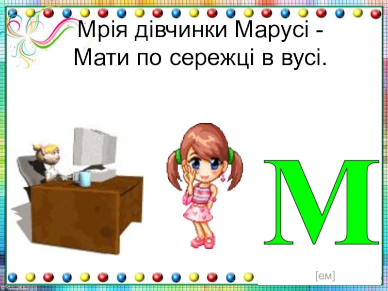 Слайд 37Мрія дівчинки Марусі - Мати по сережці в вусі.