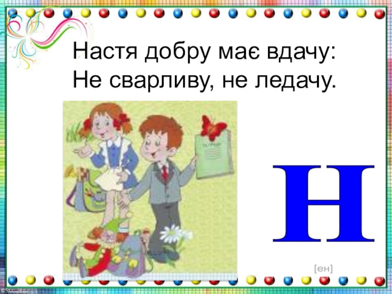 Слайд 39Настя добру має вдачу: Не сварливу, не ледачу.