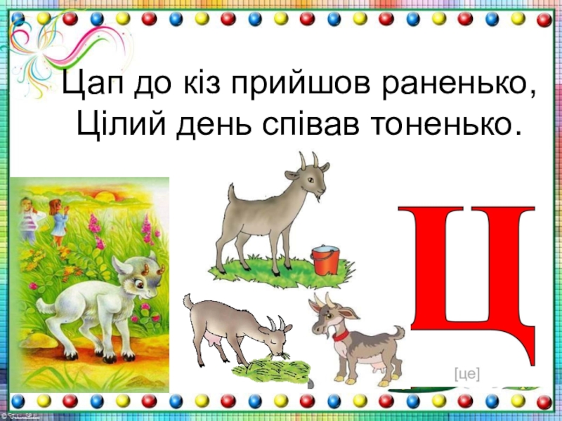 Слайд 57Цап до кіз прийшов раненько, Цілий день співав тоненько.