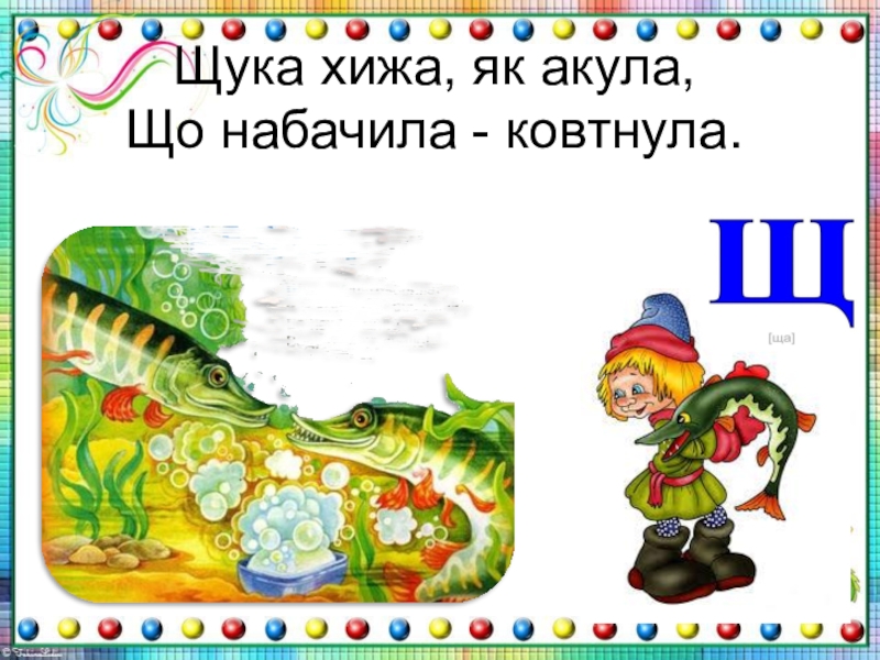 Слайд 63Щука хижа, як акула, Що набачила - ковтнула.