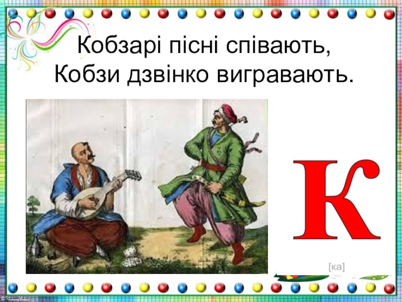Кобзарі пісні співають,  Кобзи дзвінко вигравають.