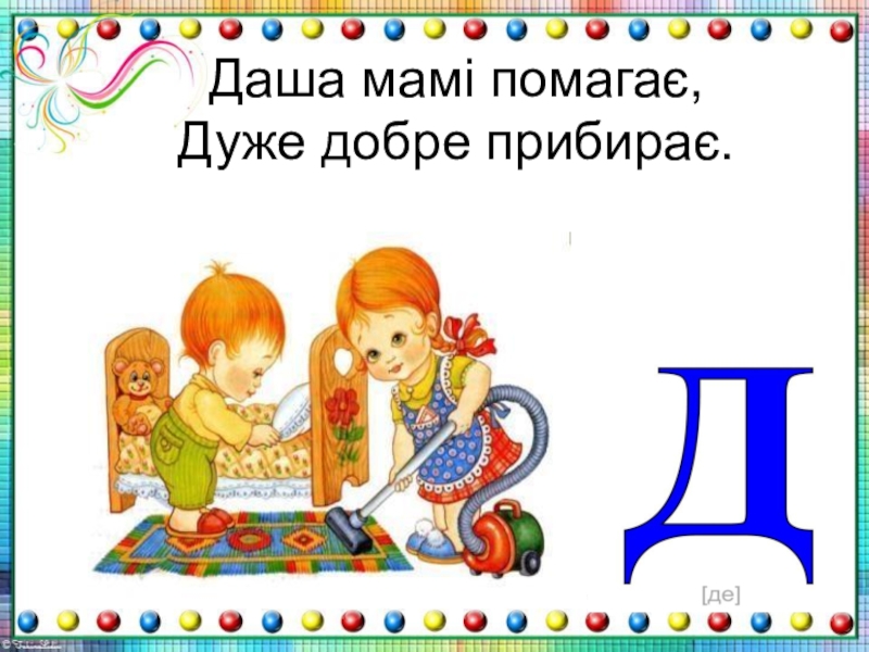 Слайд 15Даша мамі помагає, Дуже добре прибирає.