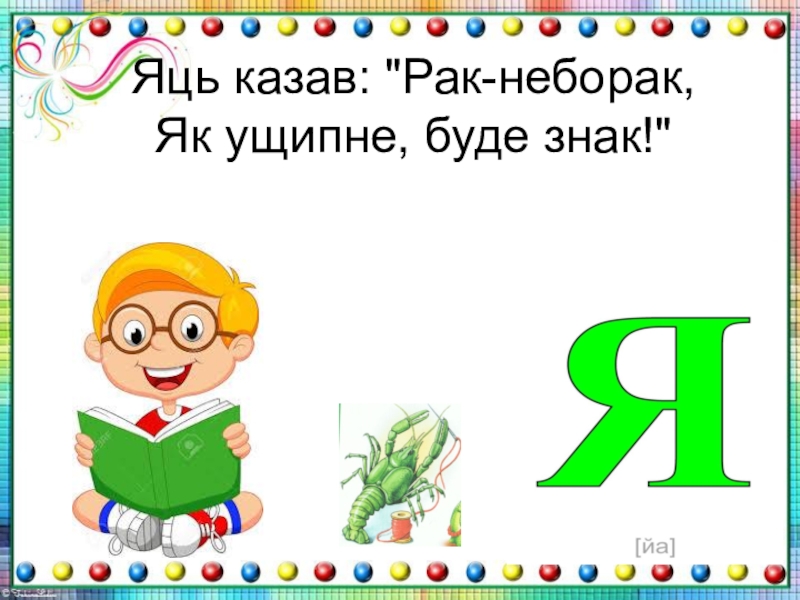 Слайд 67Яць казав: "Рак-неборак, Як ущипне, буде знак!"