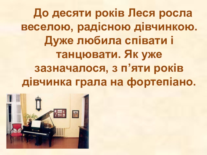 Слайд 24 До десяти років Леся росла веселою, радісною дівчинкою.