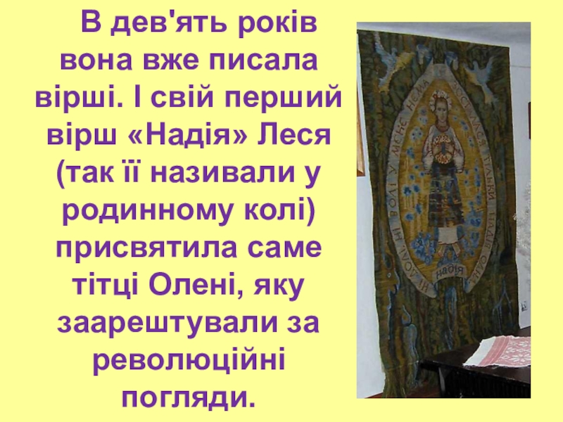 Слайд 22 В дев'ять років вона вже писала вірші. І