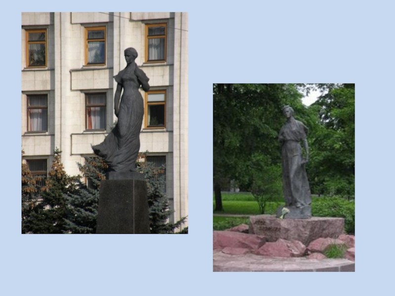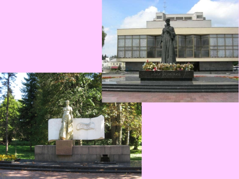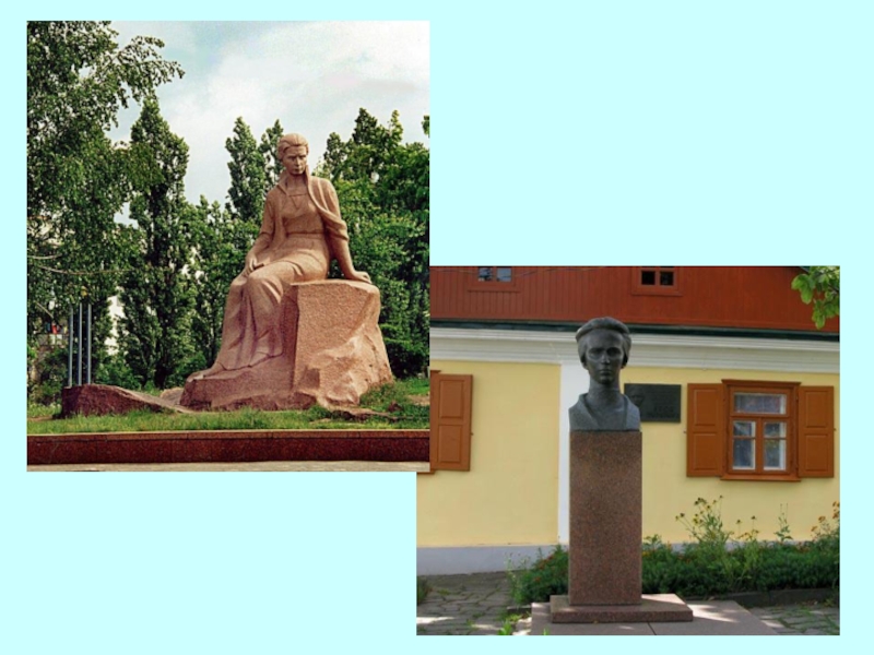 поставали перед вами впродовж подорожі, меморіальних кімнатах – музеях, в погруддях, пам'ятниках Лесі Українці. Зараз до уваги іще де кілька пам'ятників.