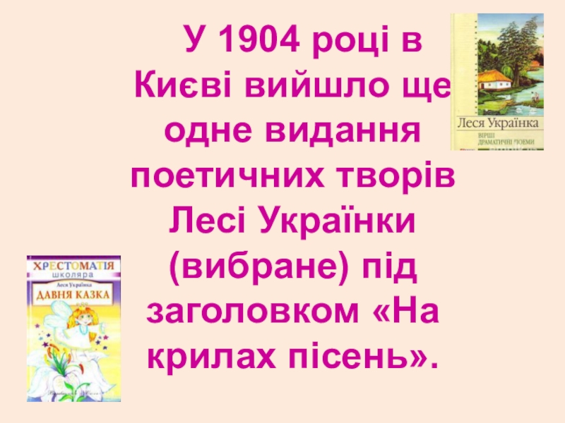 поетичних творів Лесі Українки (вибране) під заголовком «На крилах пісень».