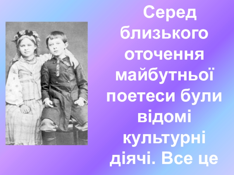 Слайд 21 Серед близького оточення майбутньої поетеси були відомі культурні діячі.