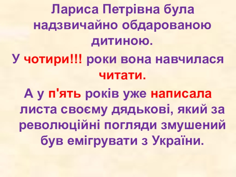 Слайд 10 Лариса Петрівна була надзвичайно обдарованою дитиною.