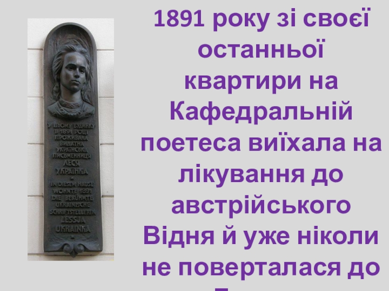 Слайд 32 1891 року зі своєї останньої квартири на Кафедральній поетеса