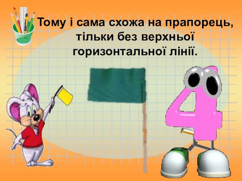 Слайд 3Тому і сама схожа на прапорець, тільки без верхньої горизонтальної лінії.