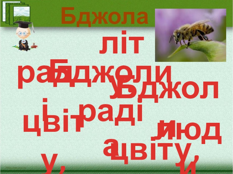 Бджола раділіту.Бджоли цвіту,алюдиБджоли раді       цвіту,а люди літу.