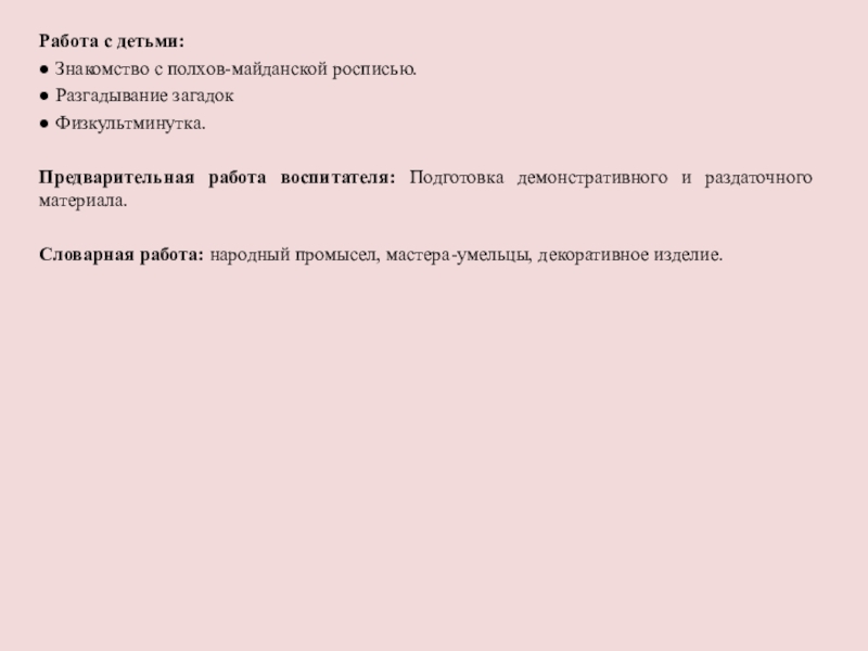 Цель: Познакомить детей с полхов-майданской росписью и особенностью палитры.
