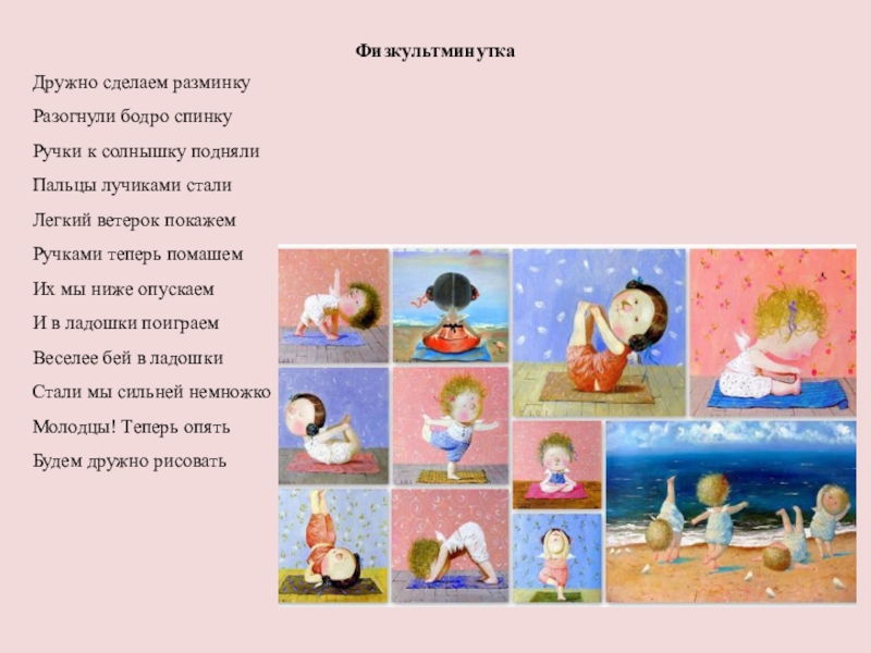 Дети: Сначала волнообразный стебель, затем крупные листья, и потом, мелкие листочки.