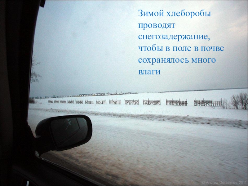 Слайд 5Зимой хлеборобы проводят снегозадержание, чтобы в поле в почве сохранялось много