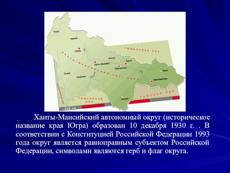 Слайд 5 Ханты-Мансийский автономный округ (историческое название края Югра) образован 10