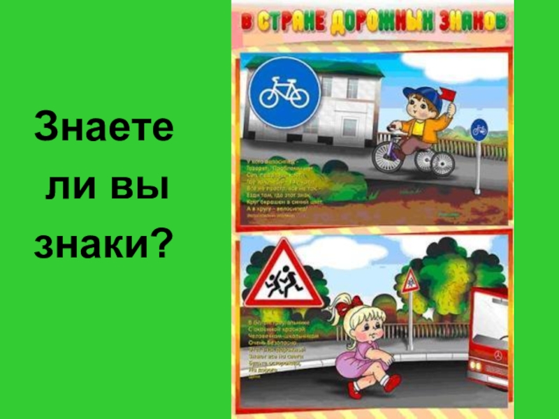 пользованием общественным транспортом, о видах дорожных знаков, их назначении и использовании.