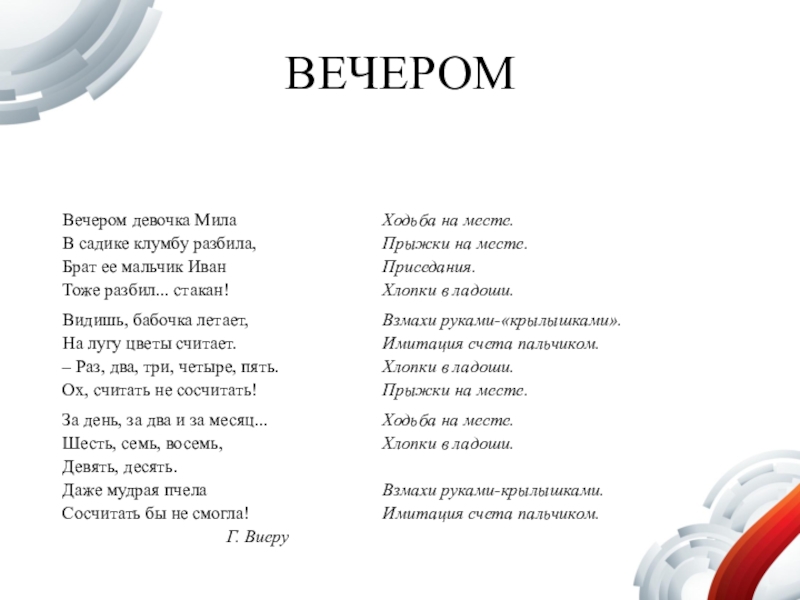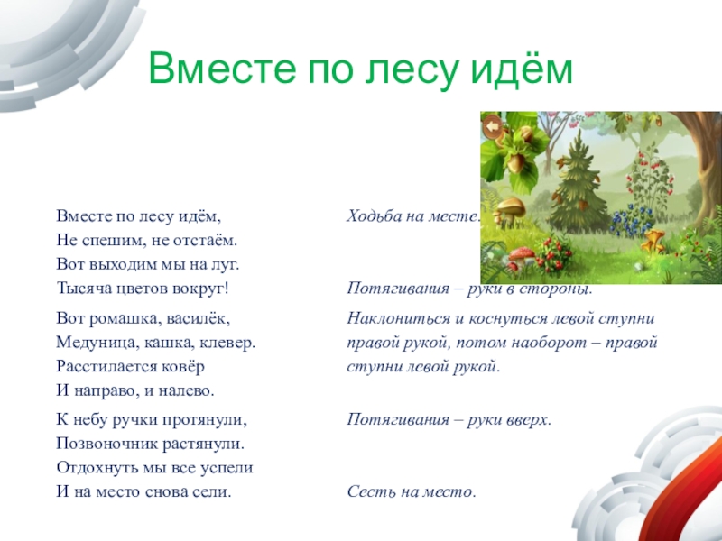 Презентация, доклад на тему Презенция в начальных классахФизминутки в стихах