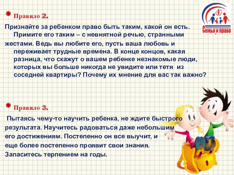 Признайте за ребенком право быть таким, какой он есть.