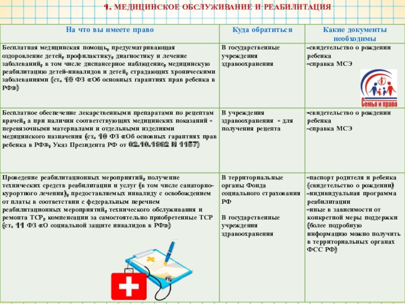 Слайд 91. МЕДИЦИНСКОЕ ОБСЛУЖИВАНИЕ И РЕАБИЛИТАЦИЯ