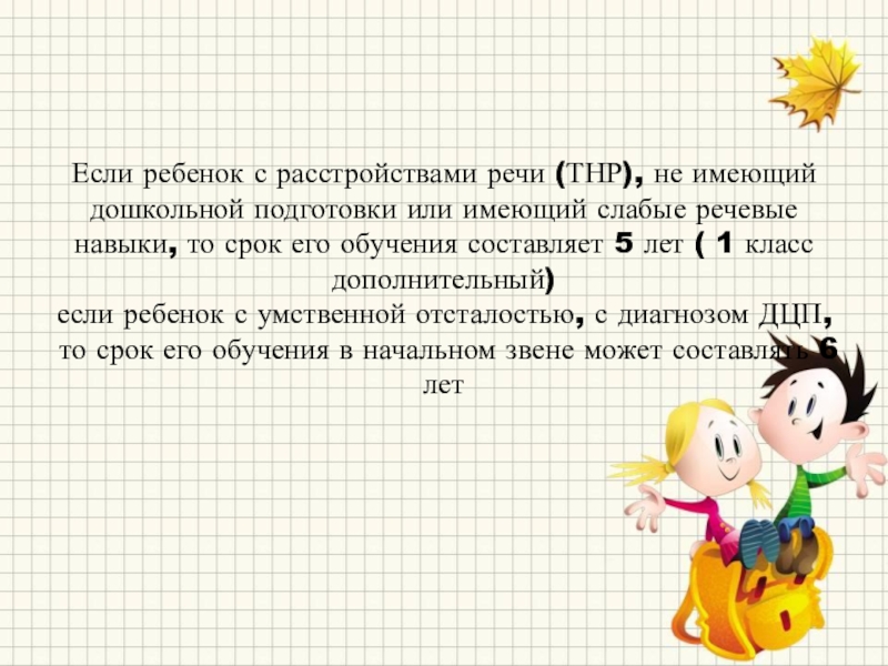 Слайд 27Если ребенок с расстройствами речи (ТНР), не имеющий дошкольной подготовки или