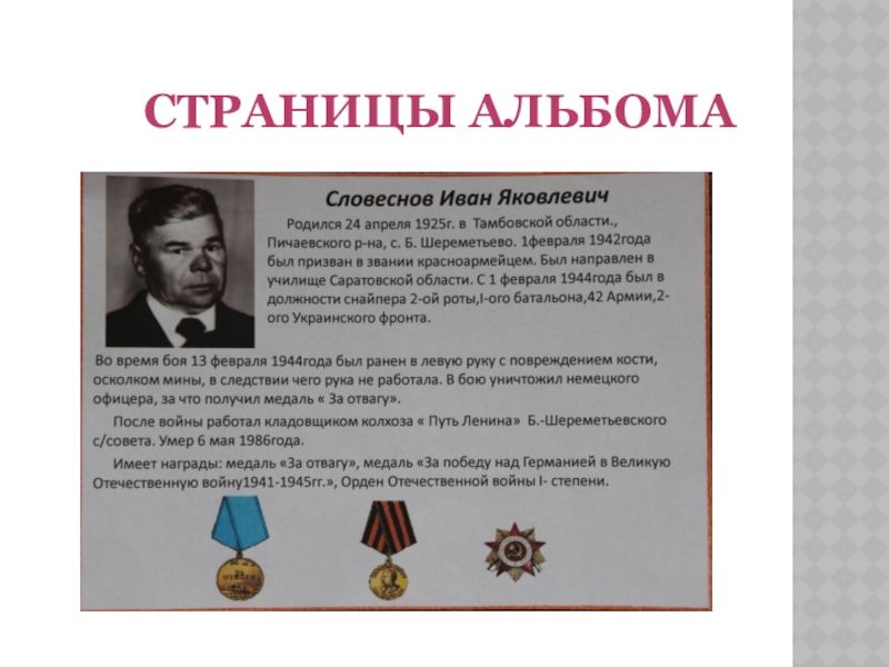 Презентация, доклад на тему Презентция Мои родственники-участники Великой Отечественной войны