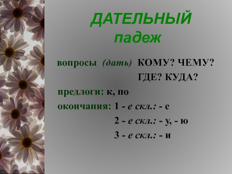 вопросы: (дать) КОМУ? ЧЕМУ?