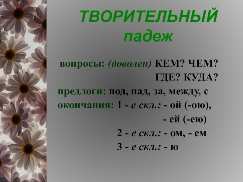 вопросы: (доволен) КЕМ? ЧЕМ?