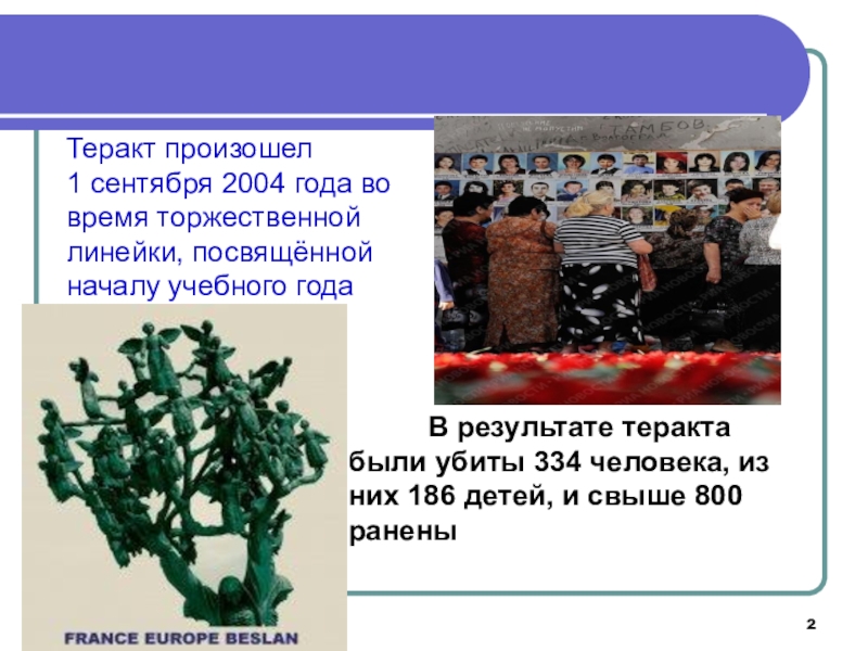 В результате теракта были убиты 334 человека, из них 186 детей, и свыше 800 ранены