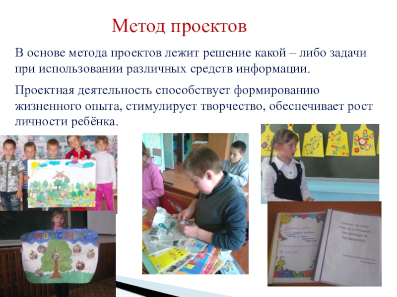 Проектная деятельность способствует формированию жизненного опыта, стимулирует творчество, обеспечивает рост личности ребёнка.