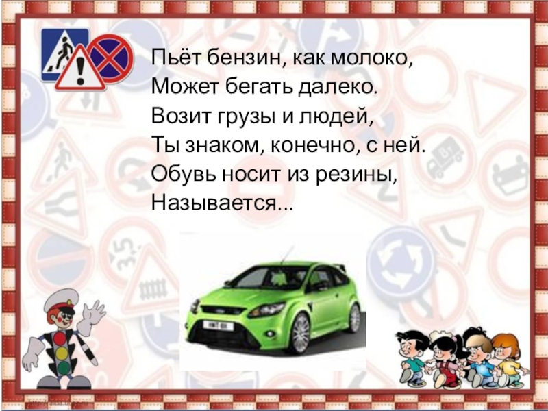 Закрепить представления детей о транспорте, умение по описанию узнавать предметы; развивать смекалку, быстроту мышления и речевую активность.
