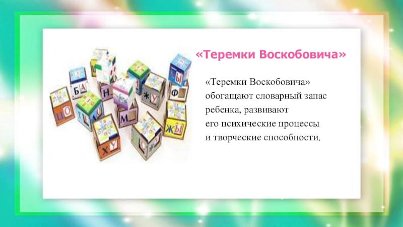 «Теремки Воскобовича»«Теремки Воскобовича» обогащают словарный запас ребенка, развивают его психические процессы и творческие способности.