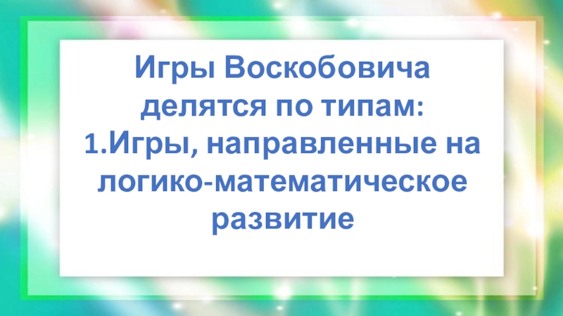 Игры Воскобовича делятся по типам:1.Игры, направленные на логико-математическое развитие