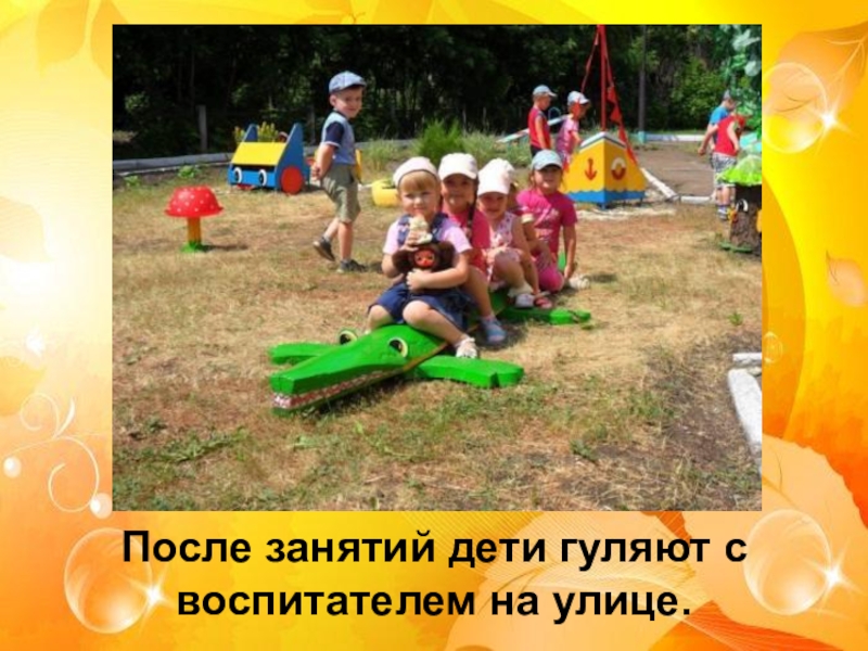 После занятий дети гуляют с воспитателем на улице.
