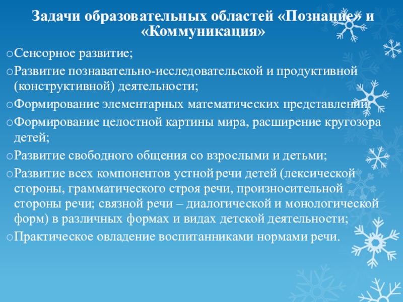 Слайд 11Задачи образовательных областей «Познание» и «Коммуникация»