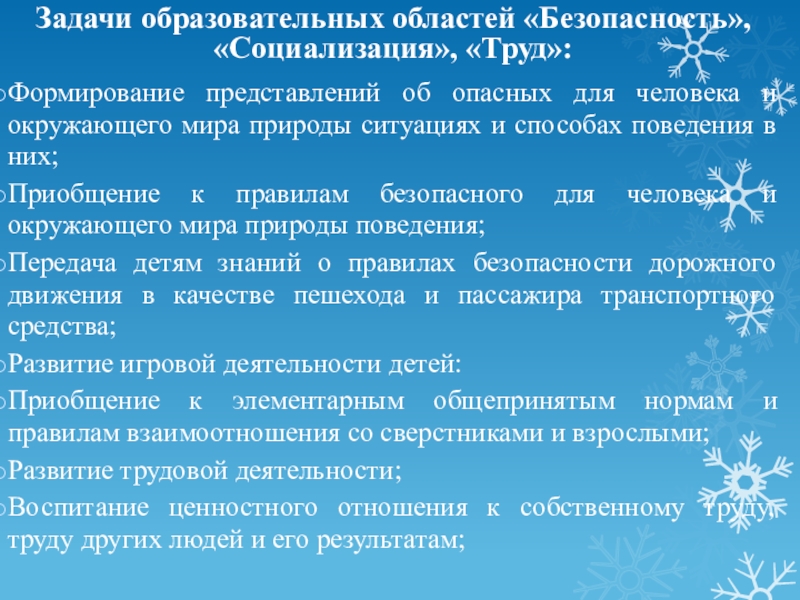 Слайд 9Задачи образовательных областей «Безопасность», «Социализация», «Труд»: