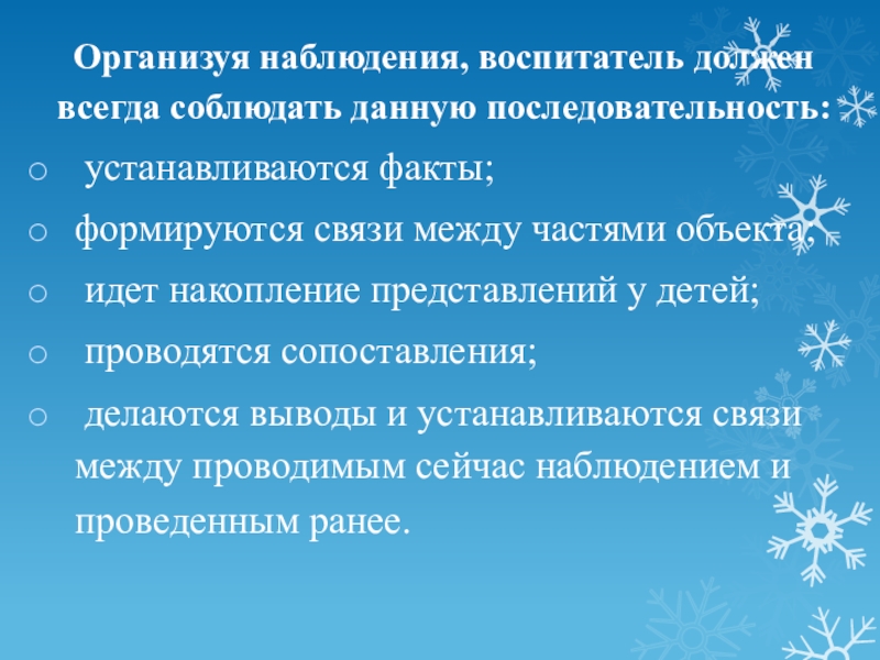 Слайд 17Организуя наблюдения, воспитатель должен всегда соблюдать данную последовательность: