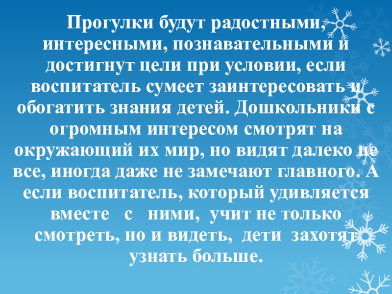 Слайд 27Прогулки будут радостными, интересными, познавательными и достигнут цели при условии, если