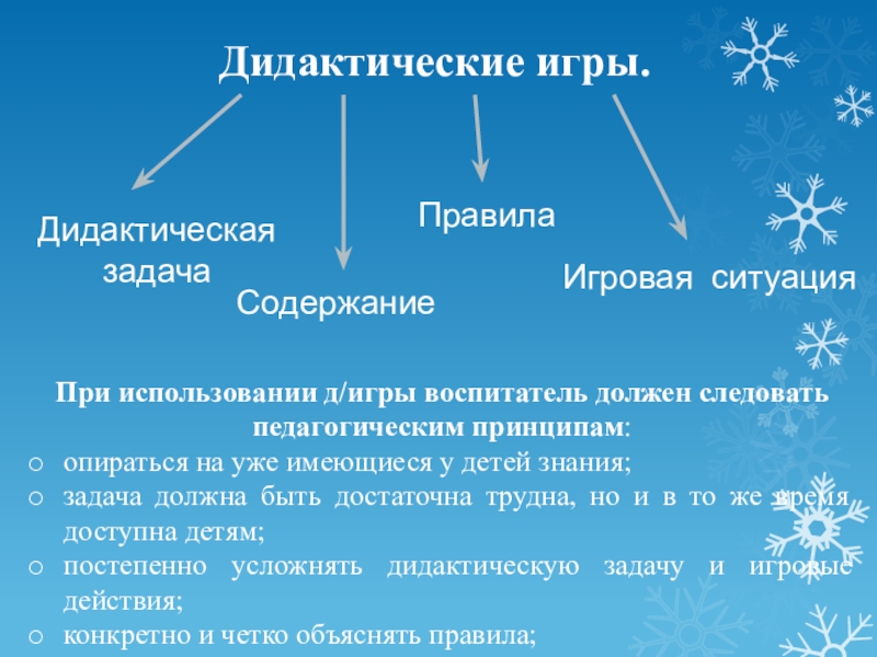 При использовании д/игры воспитатель должен следовать педагогическим принципам: