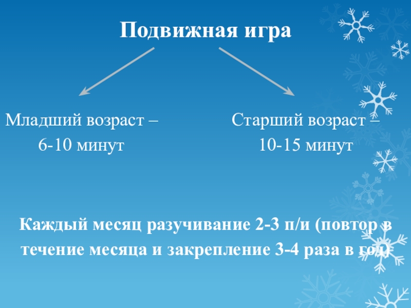 Каждый месяц разучивание 2-3 п/и (повтор в течение месяца и