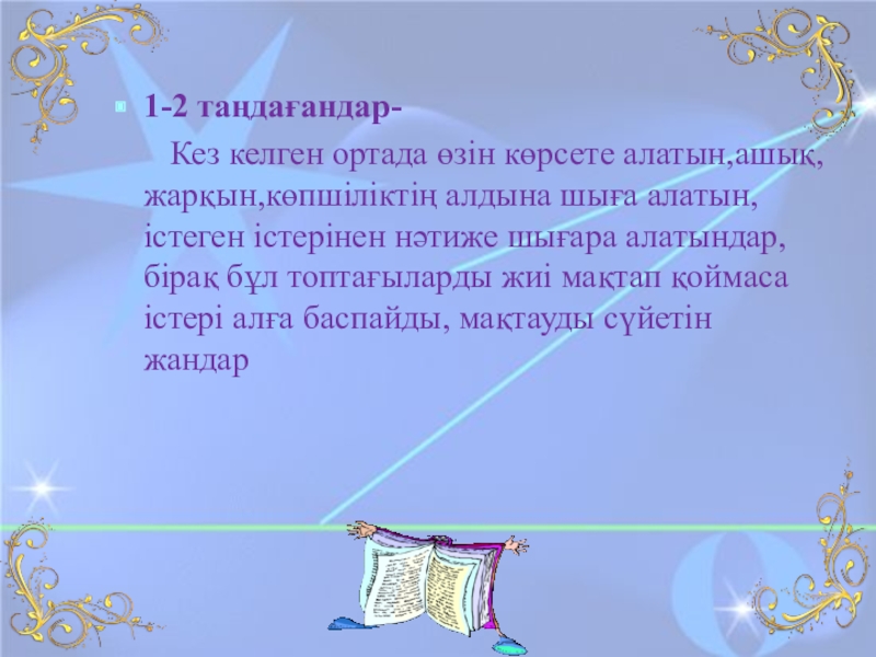 Кез келген ортада өзін көрсете алатын,ашық,жарқын,көпшіліктің