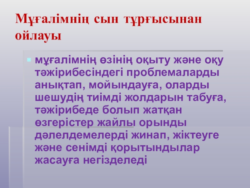 Слайд 16Мұғалімнің сын тұрғысынан ойлауы
