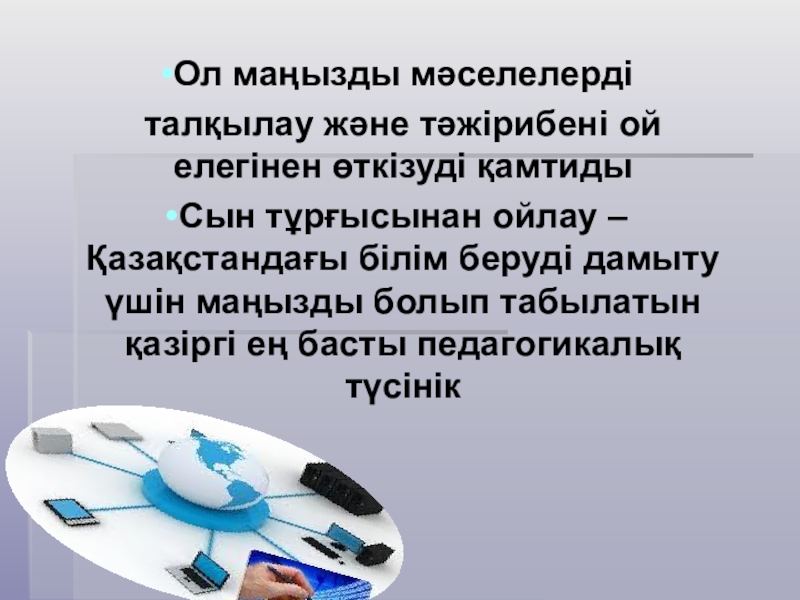– Қазақстандағы білім беруді дамыту үшін маңызды болып табылатын қазіргі ең басты педагогикалық түсінік