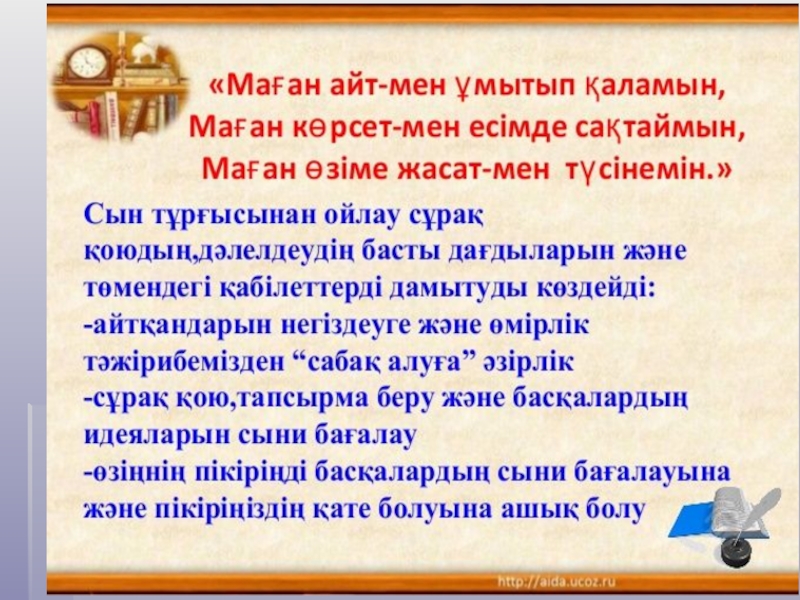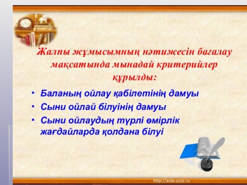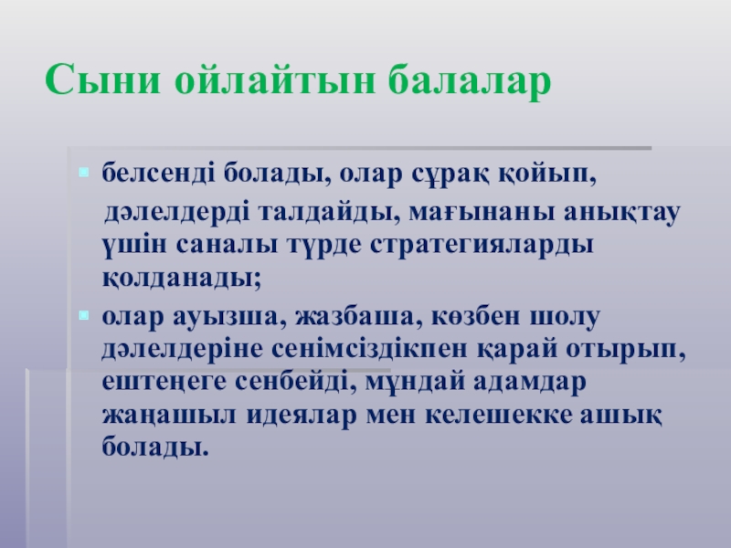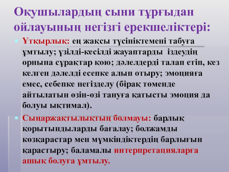 Слайд 13Оқушылардың сыни тұрғыдан ойлауының негізгі ерекшеліктері: