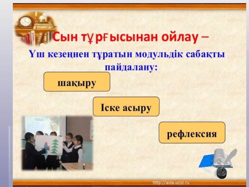 талқылау және тәжірибені ой елегінен өткізуді қамтиды