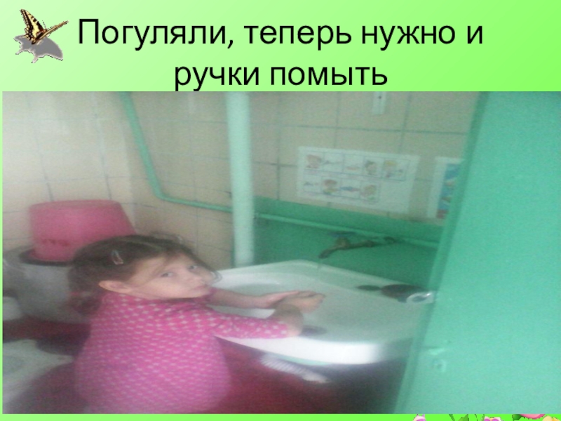 Слайд 11Погуляли, теперь нужно и ручки помыть