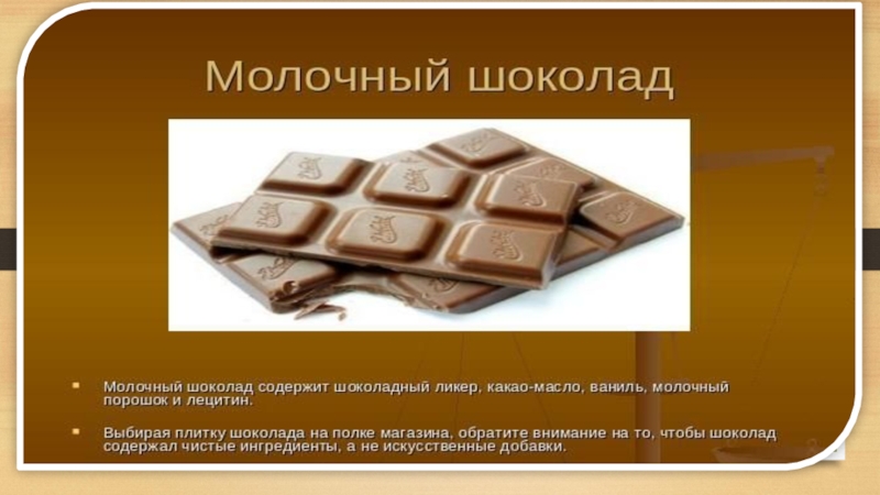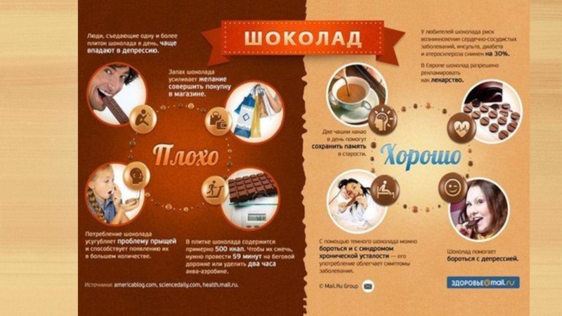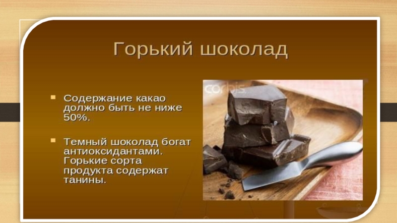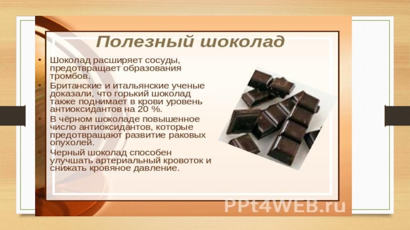 Шоколад обладает возбуждающим действием.