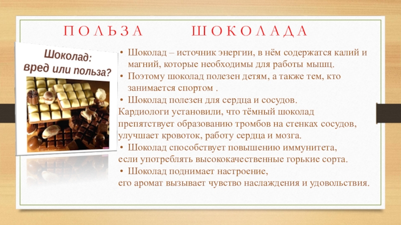 П О Л Ь З А Ш О К О Л А Д А