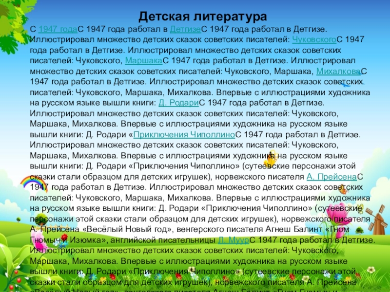 С 1947 годаС 1947 года работал в ДетгизеС 1947 года