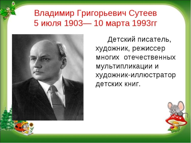 Сутеев Владимир Григорьевич сказки писал для самых маленьких.